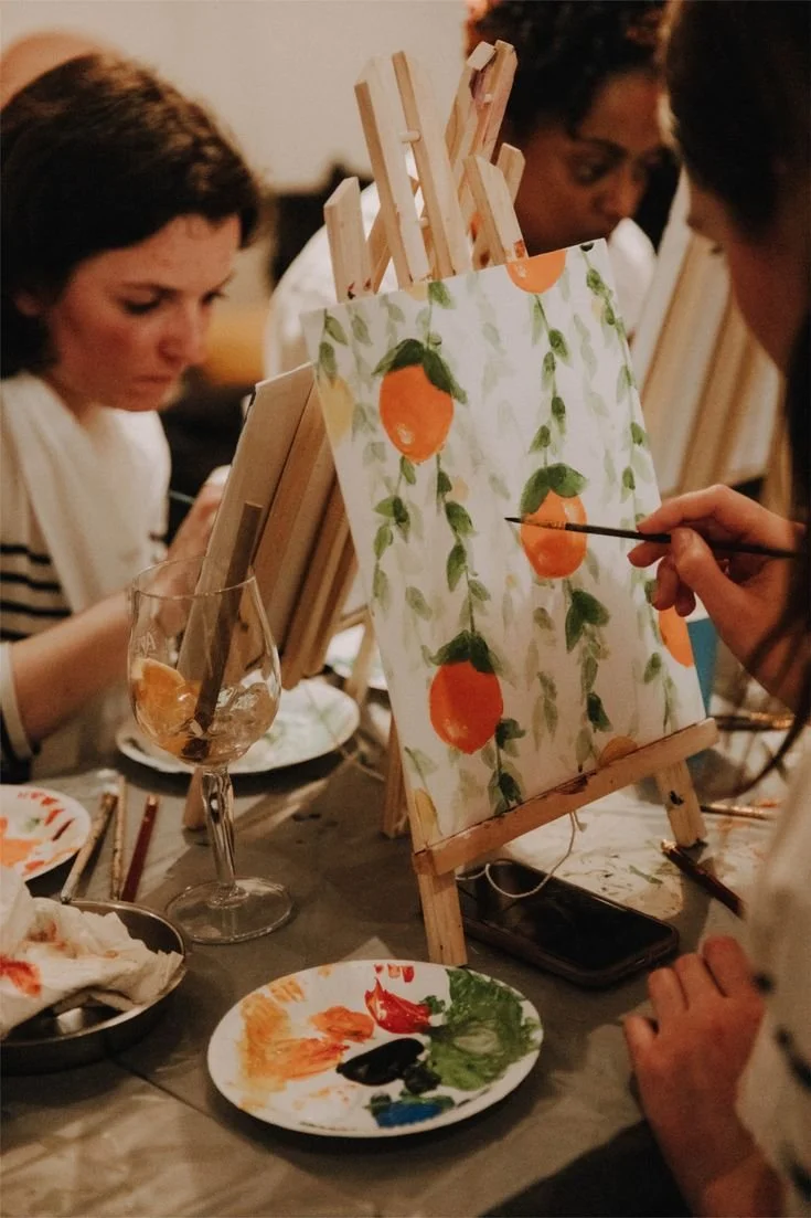 C’est une expérience créative et conviviale : tu peins une toile tout en dégustant un verre (ou plusieurs 😄).